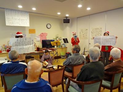 ボランティアのそよ風さんが来てくださり、X'masソングを皆さんで一緒