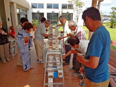 今日は風情豊かに流しそうめんを楽しみました♪皆さんそうめん