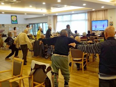 昼食後の体操の様子です。利用者様等の息がピッタリそろい、