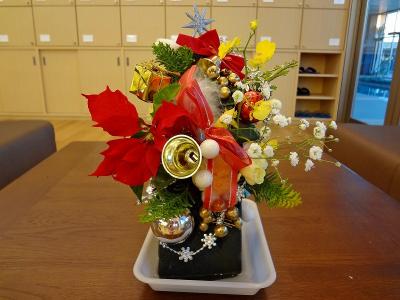 生け花もX'masバージョンでいつもと違った作品作りを楽しまれ