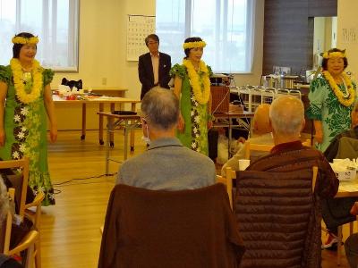 元気会の面々がボランティアで来て下さいました。歌やフラダ