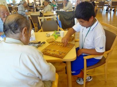 近隣中学校の生徒さんが職場体験と言うことでフラミンゴにやっ て来ました。 オセロや将棋の対戦を進んでやります。利用者さん等もいつもと 違う対戦相手にとても楽しんでおられたご様子!!!