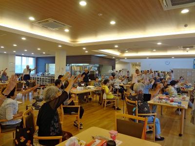 皆さん暑さに負けぬよう、朝から気合を入れて力強く体操します。