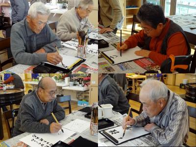 正月と言えは書初め。日頃の書道教室の成果を存分に発揮して