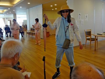 皆さんお集まり頂いて間違い探しゲーム、やってみました!! スタッフが帽子被ったり、手に持ったりして微妙に違う『前場面』 との違いを見つけて頂きます。 大笑いしながらあーだこーだと楽しんでおられましたよ。