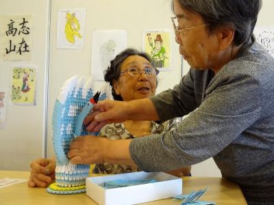 利用者さまが作られた作品です!!! すべて同じ形の折り紙を丹念に丹念に組み合わせて作られている んです。 この作品には1000枚ほどのパーツを使用したそうですよ。