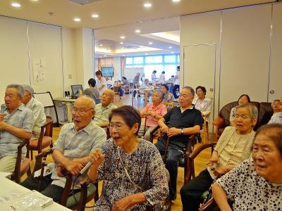 皆さん一緒に大きな声で大合唱、今日もカラオケ大会と相成りました。