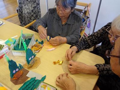 向けて『門松』作りです。折り紙で丁寧に組み上げていきます