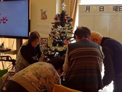 です。クリスマスツリーを皆さんで和気あいあいと楽しく飾り付