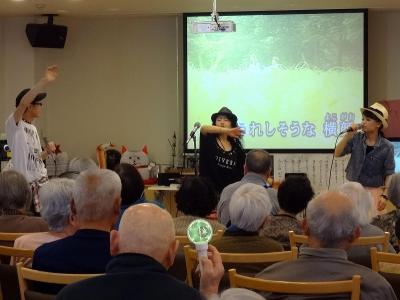 フラミンゴのアイドルユニットKYK(ケイ/ユキ/クー)が再び登場しま した!!! 桜のシーズンなので、皆さんでさくらを合唱したり、夜桜お七の 初披露で利用者様も大喜びヽ(^◇^*)/