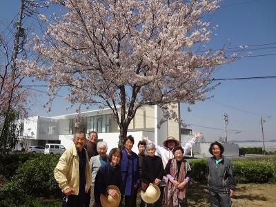 久し振りに晴れ渡り、フラミンゴ敷地内にある桜の下でプチ花見 会です。 満開の桜の下で皆さんで記念撮影をしましたが、遠くに行かなく ともこの桜で十分綺麗!!と言うお声も頂きました。 お向かいのプメハナからも桜がよく見えることでしょう、、、