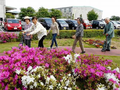 早速院内フラミンゴ遊歩道で安全安心なお散歩レクを楽しみます。