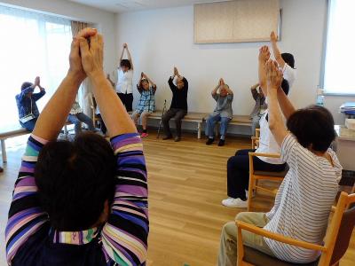 共立荻野病院の理学療法士による、少人数グループに分けての 体操指導が本日より始まりました。 理学療法士による熱心な指導により利用者様等も活気があふれ ています!!!