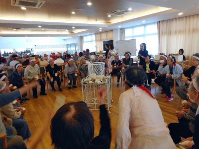 こちらは施設定例の災害避難訓練の様子です。皆さん指示に従って速やかな行動が出来ています。