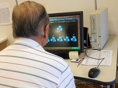 パソコンのタッチ画面でやる脳トレは当施設でのアタマの体操