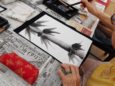 フラミンゴでとうとう水墨画教室が始まりましたよ! 初回講座は 女性の利用者さん等が多かったようですね。皆さん、講師の先生 の丁寧な指導で初回からメキメキ上達していきます、最初から素 晴らしい作品ができあがったようですね…人気沸騰必至です!!!
